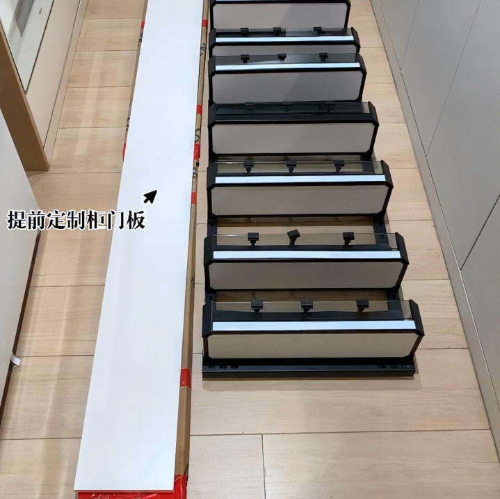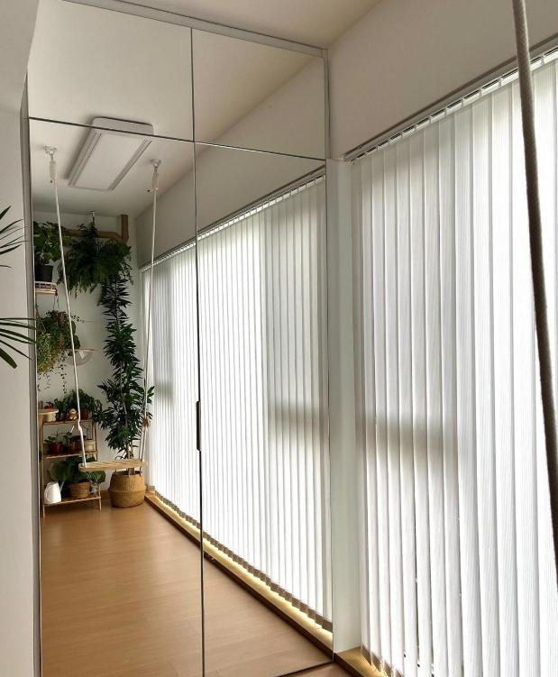柜门本身还留了150毫米的储物空间,镜子直接粘在门板上,稳得很。