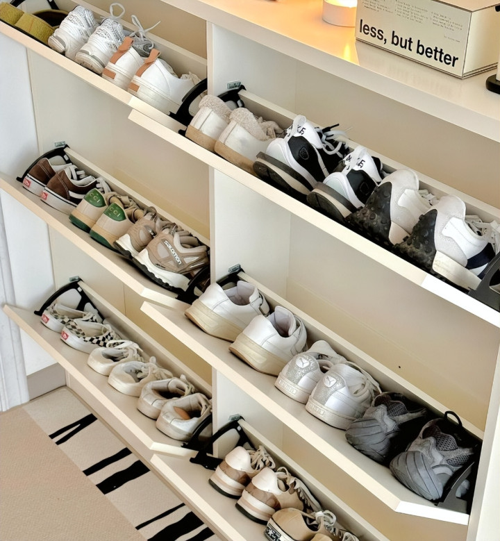 日常穿的运动鞋、通勤鞋都能轻松收进去,就连他43码的鞋,也没卡过。