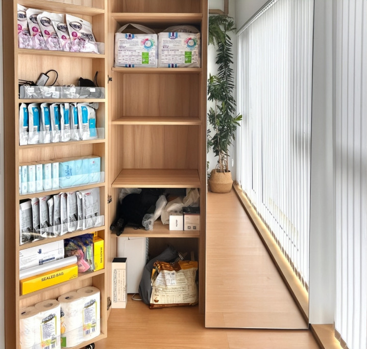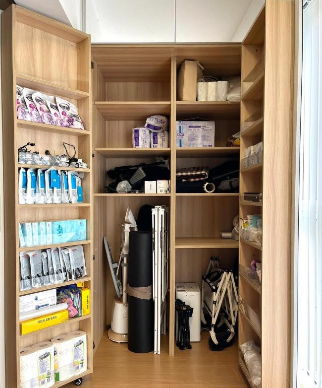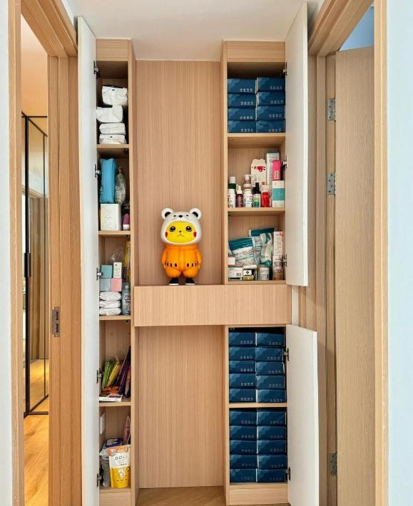 我现在家里的清洁用品、工具、囤货,基本全在这一个柜子里。