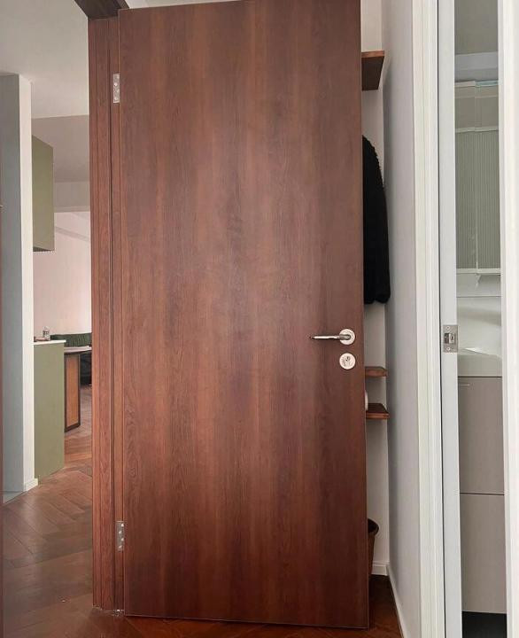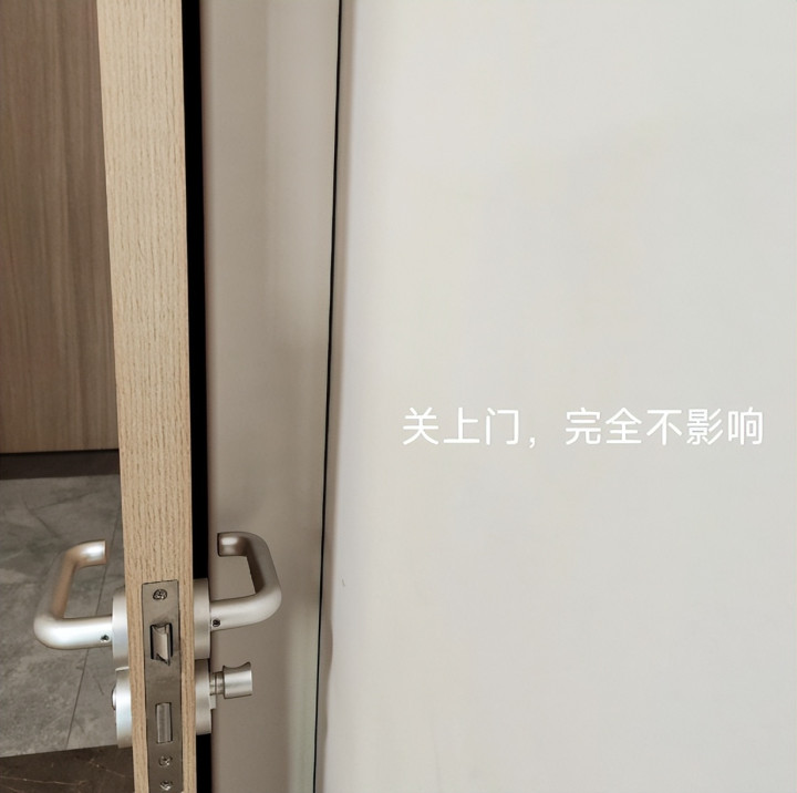 为了防止下沉,他还在门板底部加了万向轮,关上门几乎看不出来。