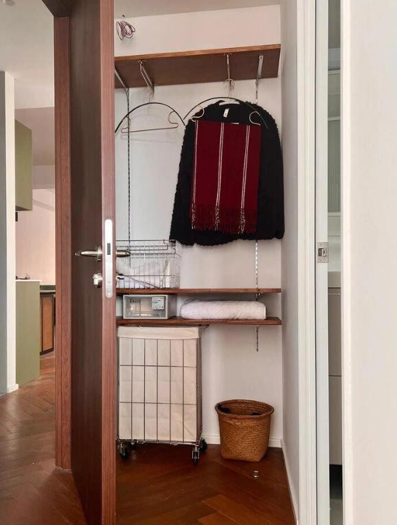 电表箱、开关面板全都被巧妙避开,还能挂外套、帽子、包。